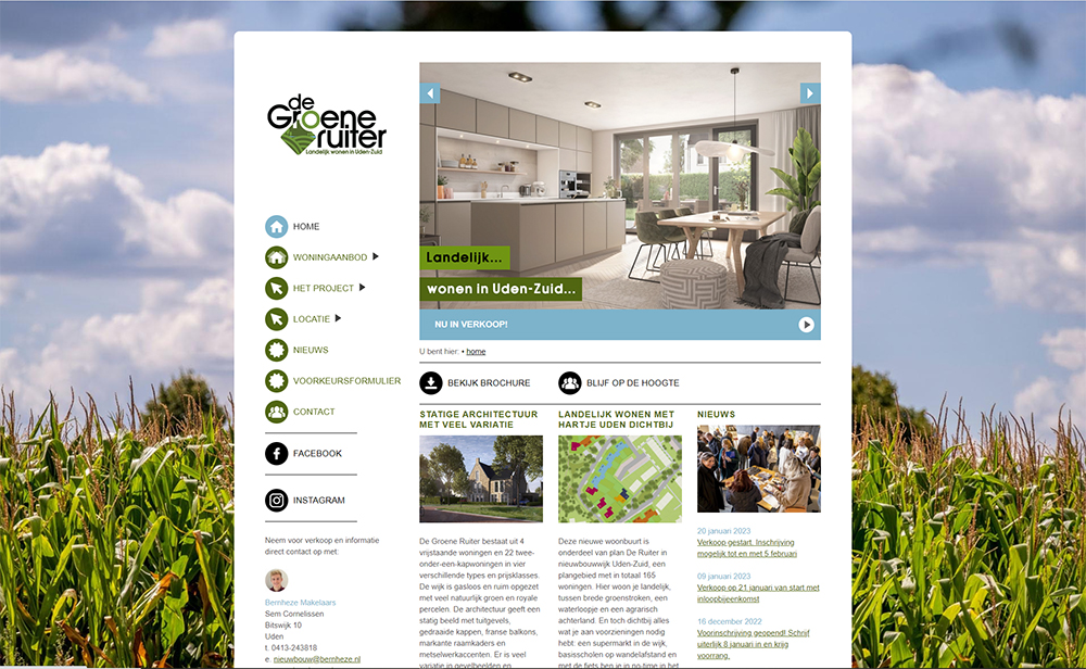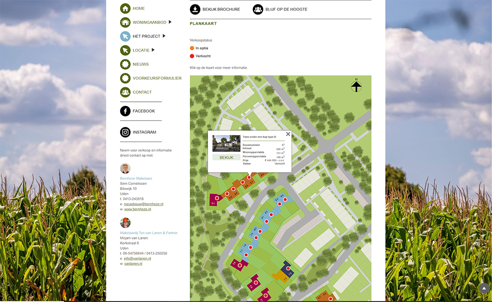projectwebsite (Webplus Cloud), interactieve situatietekening, interactieve prijslijst, formulierendatabase, nieuwsbriefmodule